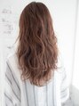 ゆるっと少しクセのある髪のロングスタイルも、毛先から中間と顔周りをウェーブ状に巻くだけでスタイリング完了!!フェイスラインにハイライトを入れて抜け感をプラス!!ナチュラルでも立体的な仕上がりにできます!!