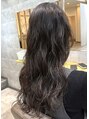 サロンワークスタイル(お客様です)ベーシックな王道ボブスタイルですがほとんどそぎをいれずに艶とモチの良い、ヘルシースタイルです。透明感と艶ののあるパールアッシュのカラーリングにほんのすこし、毛先が曲がる程度の内巻きパーマがかかっています。