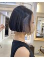 ぱつっと自然と収まるミニボブにインナーカラーのスタイルです。このカラーは状態にもよりますが、2回はブリーチが必要になります。