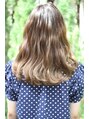 柔らかいグラデーションカラーにパーマでゆるいウェーブ、スタイルにしました。また優しい女性に印象ずけ、目元ギリギリのバングがキュートな雰囲気にしてくれます。【coo et fuu 表参道】