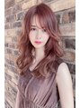 シースルー前髪にピンク系のフリンジウェーブセミロング♪藤沢