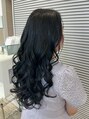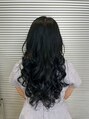 透明感のある艶ブラックに華やかなロングカールをプラス。動くたびに揺れるカールが女性らしさを引き立て、上品で華やかな印象を演出します♪