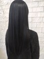 透け感のあるブルーブラックで重たく見せない、暗髪ロング。ツヤ感をしっかり出した“地毛風だけど垢抜ける”トレンドカラーです。