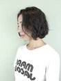 ボブラインのヘアにゆるーくパーマをかけました。乾かす前と後にクリームタイプのワックスをつけて濡れ髪風に仕上げると可愛いです。