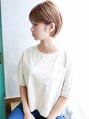 丸みショート。マッシュショートにジグザグバングは無敵の組み合わせ☆その中でも大人かわいい、小顔は欠かせませんね♪マッシュショートなので、耳かけも◯。ブランジュカラーにすることで透け感を。くせ毛風のカールを足してもgood!