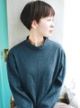 マニッシュショート。ネイビーカラーにすることで大人かわいいセンシュアルショートに☆黒髪でもかわいい斜めバングで小顔に♪似合わせカットでモードにもクラシカルにも万能です。くせ毛風のカールを足して耳かけもgood☆