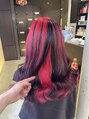 インナーカラー×アンブレラカラー元々入っていたインナーカラーをそのまま残して表面にアンブレラカラーをプラスして黒を挟んだ三層のカラーでインパクト抜群のスタイルにしました♪