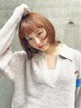 顔まわりのカットで動きを出したスタイル。暖色カラーで肌をワントーン明るく見せる効果も◎