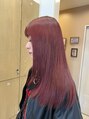 一度、明るいカラー剤で明るくしてから赤みのあるオレンジカラーをしています!ブリーチよりもダメージが少なくなるので、特に暖色系にオススメです。