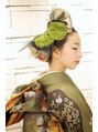 フロントはタイトに、後ろにシニョンを。細かい三つ編みをプラスしてシンプルなデザインの中に手の込んだ装飾を施して。着物に合わせて作ったハンドメイドの飾りも存在感を引き立てます。