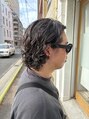 動きのあるウェーブでラフに仕上げたメンズミディアムスタイル。自然なボリュームと柔らかい動きで、こなれ感のある雰囲気を楽しめます。