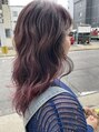 カシスピンクのバレイヤージュで立体感とツヤ感をプラス。ロングレイヤーで動きを出し、抜け感のあるデザインカラーに仕上げました。
