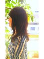 重めのスタイルをベースに、表面はレイヤーを入れます。カラーは6~7レベルのナチュラルプラチナで艶のある暗髪に。極ゆるの脱力ウェーブで抜け感を。