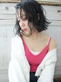 黒髪に見えて濃いめのグレー♪光に透ける黒髪です。トップからウェーブでくせ毛っぽく♪巻くのがニガテな方はパーマがオススメです。