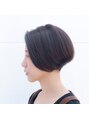 少し、モードよりのサロンワークスタイルで首を長く見せます。サイドとバックは、刈り上げています。イメージは、女優のティルダ・スウィントンです。カラーは、6LVのアッシュグレージュです。骨格と毛流によっては刈り上げない場合もあります。