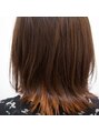 インナーカラーにオレンジを入れて。表面は、ブラウンを入れないようにした、ベージュアッシュ。2枚の写真は、光のあたりかただけで変わります。