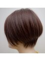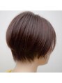 レザーのショートカットスタイルです。毛先の軽さと、形の丸みのバランスにきをつけてカットしました。カラーはN.カラーの新色ベリーショコラです。