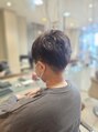 サイドからバックにかけて刈り上げをし上から被せてツーブロックにしています!軽い動きを出す為ハイライトも入れています!