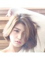 少し前下がりにカットしローレヤーを入れて動きのあるボブスタイルに。かきあげバングで大人らしさを演出☆カラー11トーンのはパールグレージュで透明感を♪【Libera表参道】