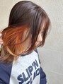 人気のインナーカラーにオレンジ♪表面もオレンジ系のブラウンで馴染み良く!暖色系は持ちがいいのでおすすめです♪ [髪質改善/トリートメント/酸性ストレート/ダブルカラー/インナーカラー/イヤリングカラー/ハイライト/バレイヤージュ/ケアブリーチ/ブリーチ