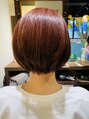 カラーはローズピンクで艶を強調しました。カットは低めのレイヤーのショートボブでスタイルの持続が長くなるようなカットにしました。