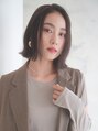 重め切りっぱなしボブ/外ハネ/暗髪/透明感カラー