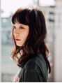 カラーリングは暗めのダークブラウン。カットは顔まわりにほどよくレイヤーを入れ、フロントから見て、少し軽めの印象に。他は重めにして、全体をナチュラルなくせ毛風にまとめました。バングにはエアリー感を出して子供っぽくなりすぎないようにしました。