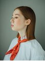 ヘアカラーは人気のオレンジカラー!!元気なイメージと個性派なオレンジカラーはブリーチ必須です☆ヘアスタイルはぱつっと切りっぱなしの肩上ボブ。ぺたんとボリュームを抑えてスッキリとした雰囲気のストレートスタイルになっています!