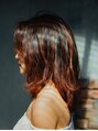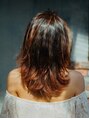 ヘアカラーは、暖色系のお色味でハイライトを全体的に入れてメリハリをつけたスタイル!!温かみのあるお色で優しい印象に☆全体をブリーチしていないのでダメージを削減。センターパートスタイルの長めバングがより色っぽく女っぽく見えます。