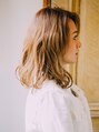 前下がりのボブから伸ばしているほぼワンレンベースのカット!重たく見えすぎないようにするため、明るめのベージュに少し温かみのあるオレンジっぽさの入ったカラー!透け感と抜け感で軽く見え、オレンジっぽさが顔色を良くするのでオススメのカラー!