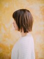 あご下でそろえたワンレングスベースの外ハネボブ。カラーは栗のような柔らかいベージュカラー。光に透けるような柔らかいカラーです。シンプルな形だからこそカラーにこだわりを!