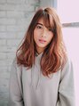 ミディアムレングスのゆるふわウェーブ!毛先にゆるくウェーブを出しているのでAラインのミディアムですが全体的に軽い印象になります!ヘアカラーのオレンジベージュでキュートに!!