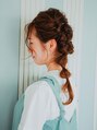 簡単で可愛いゆるふわアレンジです!髪の毛をセンターで2つに分けて、流行りのくるりんぱを作って繋げていきます。くるりんぱで穴が開かないように気をつけて下さい!中間まできたらお団子を作って結んでいきます。毛先は巻いていくと可愛いです!