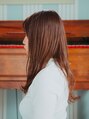 ワンレンベースの重ためロングスタイル。バングは巻いて目の上にくる長さのシースルーバングにして可愛らしさを出しました。カラーリングもブラウンベースに少量ピンクを足すと艶もでて柔らかさもでて可愛さアップです!!
