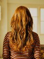 ローレイヤーのスタイルにトップから強めカールのパーマをかけています。前髪の長めなのでエッジが効いているが、大人な女性を演出してくれます。カラーはツヤ感のあるオレンジベージュ。ロングスタイルですが、軽やかでさわやかなスタイルでおすすめです。