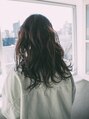 カラーリングは黒に近いダークブラウンでシックなイメージに。 大きめのウエーブでしっかり巻いてカジュアルなパーマを出すのがラフな大人のイメージにより近づきます!!