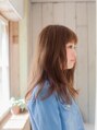前髪に束感を作り、眉上バングにしてガーリーなロングスタイルに適度なスパイスを!クセ毛風のゆるいウェーブでカジュアルな印象に! アレンジ次第で色んな印象を作れる万能ヘアーです☆