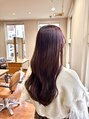 カラーはダークラベンダーピンク、暗めのラベンダーやピンク系のカラーで大人っぽさと艶感をプラス!仕上げはコテでゆる巻き仕上げ♪【気に入って頂いたスタイルは、ブックマークをしてご提示ください】このスタイルをご希望の場合はお気軽にご指名下さい!