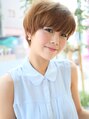 トップに長さを残しているので、ふわっとした丸いシルエットに。カラーにもあたたかみがあり、ボーイッシュになり過ぎないフェミニンなショートスタイルです♪目の上ギリギリに流した厚めバングで目力もUP!今季はベージュカラーやメルティカラーもオススメ!
