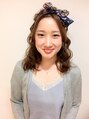 全体を波ウェーブでボリュームUPしてキュートなハーフアップスタイルに♪大きめスカーフがアクセントです^^女子会や二次会におすすめ◎