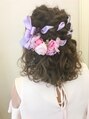 ベースにしっかりとウェーブを付けて編みこみとツイストでガーリーなハーフアップに^^飾りのリボンもバランスを見ながら一緒にアレンジしました。甘めなスタイルがお好きな方はぜひ♪