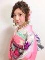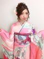 全体波ウェーブでふんわりさせつつ、トップは高さを出して和装っぽい雰囲気に仕上げました。ボブの長さを活かして後れ毛は多めに残しています。格好良さと可愛さの両方を兼ねたスタイルです^^