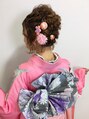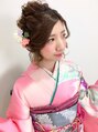 全体波ウェーブでふんわりさせつつ、トップは高さを出して和装っぽい雰囲気に仕上げました。ボブの長さを活かして後れ毛は多めに残しています。格好良さと可愛さの両方を兼ねたスタイルです^^