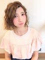 ハイトーンのグラデーションカラーです♪毛先にハイライトをいれて抜け感を出しました^^イルミナカラーで赤みのないアッシュベージュに♪カットは切りっぱなしのAラインボブです☆強めの波ウェーブで夏っぽくスタイリングしました!