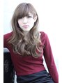 目の上ギリギリバング、甘くなりすぎないように、アッシュブラウンのカラーリングと、カールの重×軽感で大人っぽさをキープして。デジタルパーマでシルエットを揺らせば、においたつような女っぽさに☆