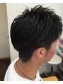 サイドは強めの2ブロックに仕上げトップフロントは立ち上がりやすくなるよう毛量調節!!おでこをしっかりだしプライベートでのお洒落なヘアはもちろんできる営業マンもイメージしてカットしました☆