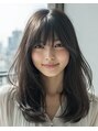水素ケアで髪の内部に潤いを閉じ込め、艶とハリをUP。透明感のあるブラウンで柔らかく仕上げた、ナチュラルで上品な艶髪ミディアムです。