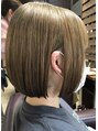 収まりのいいストレートボブスタイル。ハイトーンのグレージュにして柔らかさをだして女の子らしさもあり、若々しさもあるナチュラルなスタイルです。