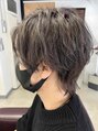 毛流れや立体感の出しやすい軽めのセンター分けマッシュウルフスタイル。1度全体にブリーチし、暗いツヤの出るアッシュグレー に染めました。人気のあるメンズスタイル。