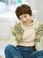 ボーイッシュすぎずカジュアルすぎない、柔かなボリューム感と丸みのあるショートスタイル☆ギザギザなショートバングとトップの根元がつぶれてしまわないようにふんわりパーマ、毛先もピョコピョコ外ハネにスタイリング。シナモンベージュで透明感をプラス。